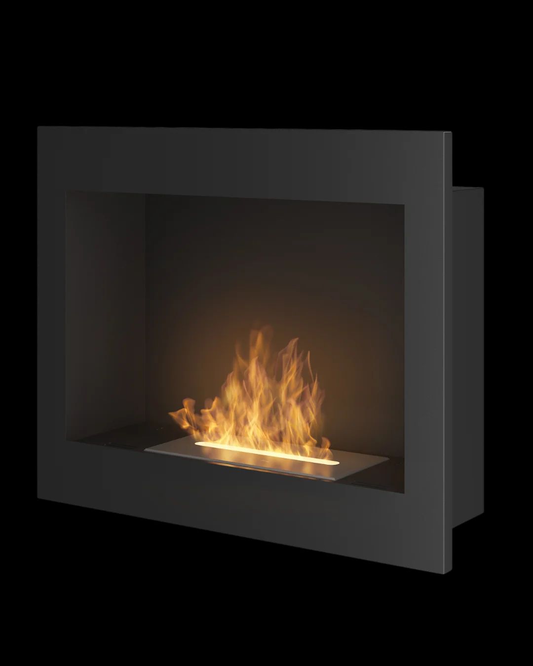 Frame is a wall-mounted fireplace that has a noble and classic shape. In addition, the black insert particularly emphasizes the fire.